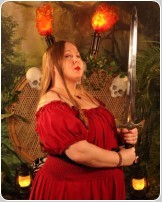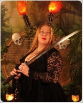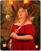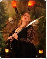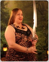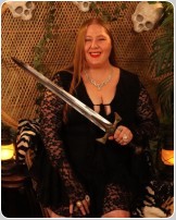 Please welcome another new model to our ever growing ranks of Bladed Babeness. Say hello to the very cute Ki-Ki. We had a little trouble getting her name right the first time and thought she wrote "Kinki" on the form, but she then told us the "N" was silent. OK, we never argue with a lovely lady... especially when she's the one hold a sword!