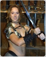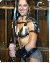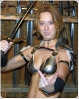 We decided to have a little fun with a Throw Back set from 20+ years ago we think you will love. Please welcome back the lovely Natasha, full name Natasha Fatale. We first met her out at the local Ren-Faire shopping for swords to go with that awesome armor outfit of hers at the Angel Sword booth. Naturally we asked her to pose there for us and the first 11 pictures in this set after the Title picture are from that shoot back in 2003. The rest of these wonderful pictures are from a shoot we did in the BwB Studio in 2006. It's been 20 years and we think it's about time we have this awesome lass show off for her fans once again. Sadly, we have lost contact with her, but we know she will be pleased to have you enjoy these fantastic pictures once again!